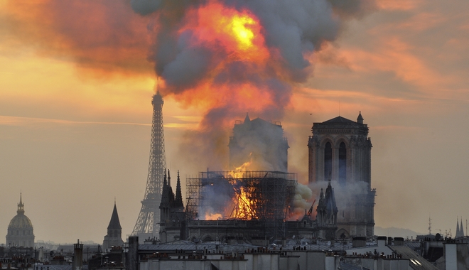 Στις 15 Απριλίου, η σκεπή και ο ξύλινος σκελετός της στέγης του καθεδρικού ναού της Νοτρ Νταμ καταστράφηκαν από πυρκαγιά.