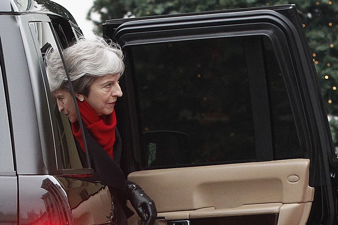 British Prime Minister Theresa May comes to the meeting with Polish Prime Minister Mateusz Morawiecki in Warsaw, Poland, Thursday, Dec. 21, 2017. May's visit to the Polish capital comes as a politically turbulent time for both countries, as Britain prepares to leave the European Union and Poland finds itself in a escalating standoff with the bloc over a bitterly criticized overhaul of its judicial system. (AP Photo/Czarek Sokolowski) AP Photo/Czarek Sokolowski