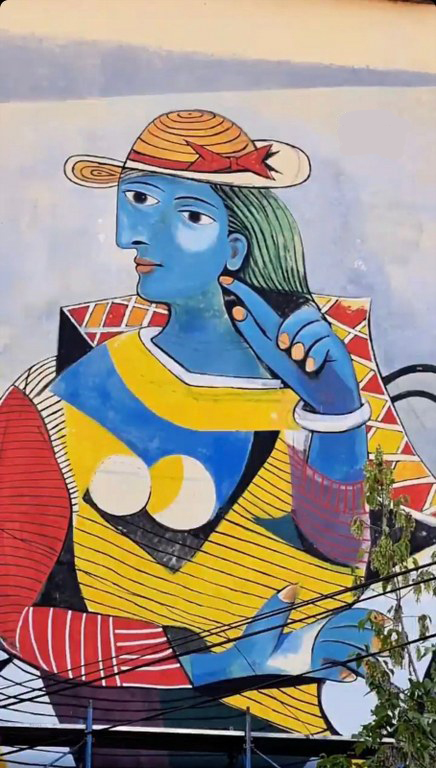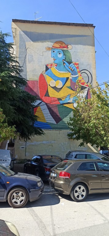 “Ενώ ταυτόχρονα προχωρήσαμε και σε πιο «τολμηρές» παρεμβάσεις για την ιστορία της πόλης, όπως η τοιχογραφία με τη διασκευή του έργου του Πικάσο: o Πικάσο ήταν απαγορευμένο “είδος” στην εποχή της δικτατορίας”, αναφέρει η διοργάνωση.