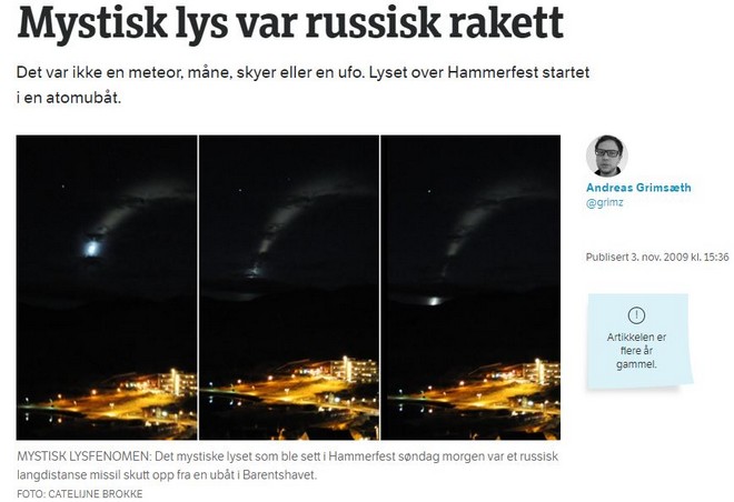 Η επίσημη θέση των Ρώσων στις 10 Δεκεμβρίου 2009, μέσω του ρωσικού Υπουργείου Άμυνας έδωσαν την εξήγηση ότι επρόκειτο για μια δοκιμή πυραύλων Bulava η οποία είχε αποτύχει. Σύμφωνα με τον εκπρόσωπο: “Τα πρώτα δύο στάδια του πυραύλου λειτούργησαν κανονικά, αλλά υπήρχε τεχνική δυσλειτουργία στο επόμενο τρίτο στάδιο της τροχιάς.”