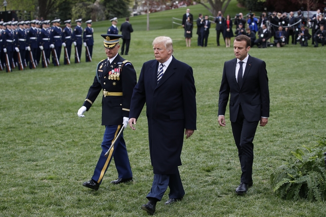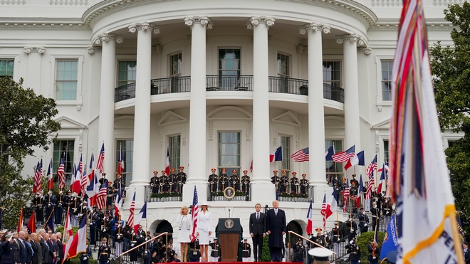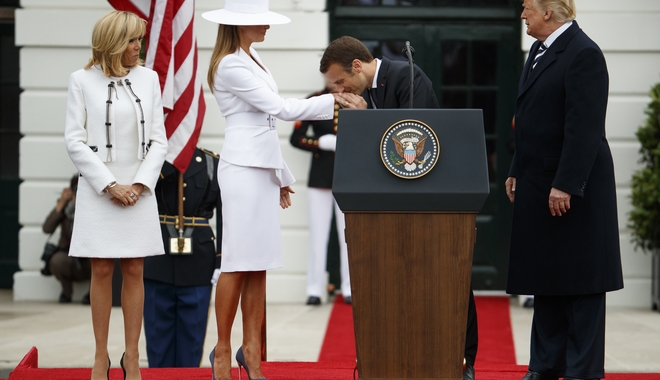 Στον Λευκό Οίκο υποδέχτηκε ο αμερικανός Πρόεδρος Ντόναλντ Τραμπ τον γάλλο ομόλογό του Εμμανουέλ Μακρόν. Πρόκειται για την πρώτη επίσκεψη αρχηγού κράτους στις ΗΠΑ, η οποία λαμβάνει χώρα κατ’αυτόν τρόπο στη διάρκεια της προεδρίας του Τραμπ. Κατά την διάρκεια της επίσημης αυτής επίσκεψης (State Visit, όπως είναι ο αγγλικός όρος), η οποία λέγεται και Επίσκεψη της Γαλλίας (καθώς ο αρχηγός του κράτους εκπροσωπεί την χώρα του), τηρείται αυστηρά πρωτόκολο που περιλαμβάνει μεγάλο αριθμό τελετών, μεταξύ των οποίων και το επίσημο δείπνο, όπως αυτό που πραγματοποιήθηκε μεταξύ των ζεύγων Μακρόν και Τραμπ το βράδυ της Δευτέρας.