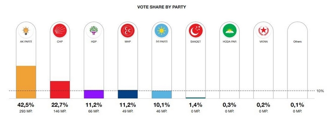 Πολλοί εκτιμούσαν πως ο Ερντογάν θα γίνει ο “απόλυτος Σουλτάνος”, ωστόσο, μιας και δεν έχει την απόλυτη πλειοψηφία στη Βουλή, μπορεί να πει κανείς πως είναι μεν ρυθμιστής, αλλά θα ελέγχεται από την αντιπολίτευση αλλά και από το φιλοκουρδικό κόμμα το οποίο κατάφερε να μπει στη Βουλή παρότι ο επικεφαλής του, Ντεμιρτάς, είναι φυλακισμένος.