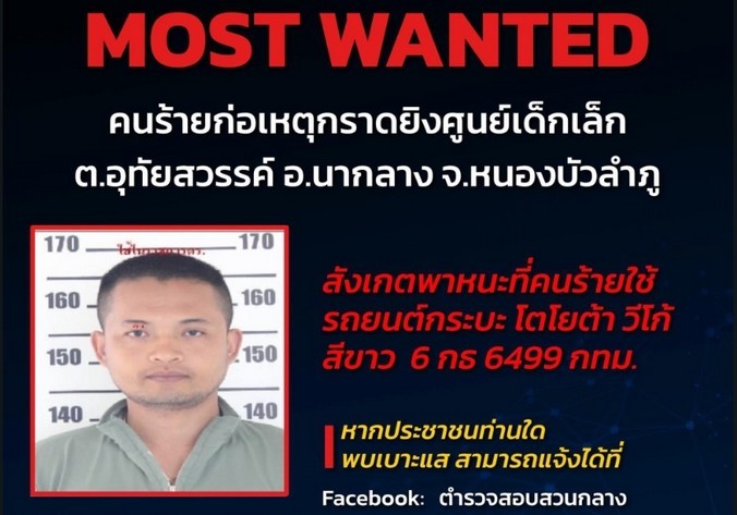Μετά το μακελειό που έλαβε χώρα στην Ταϊλάνδη σε παιδικό σταθμό της χώρας οι αρχές έδωσαν στη δημοσιότητα φωτογραφία και στοιχεία ενός υπόπτου χωρίς πάντως να διευκρινίσουν αν είναι αυτός ο οποίος πυροβόλησε τουλάχιστον 34 ανθρώπους.