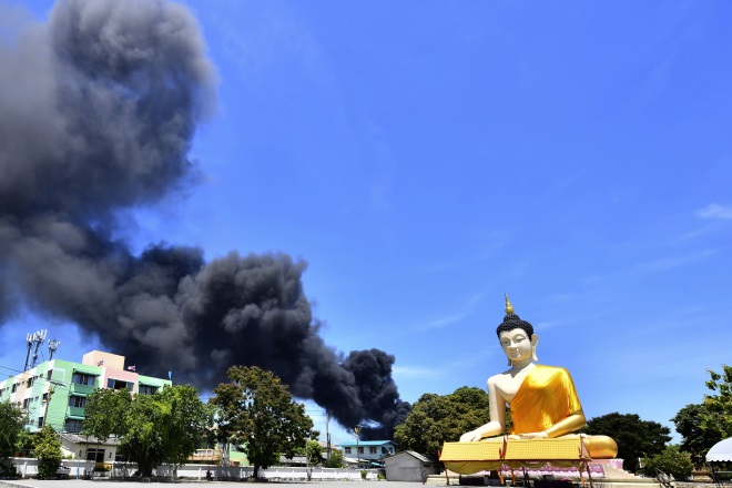 Το εργοστάσιο, το οποίο παράγει διογκωμένο αφρό πολυστυρενίου, βρίσκεται σε απόσταση περίπου 4,8 χιλιομέτρων από το διεθνές αεροδρόμιο της Μπανγκόκ Σουβαρναμπούμι.