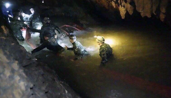 Οι διασώστες προσπαθούσαν από το πρωί να ανοίξουν έναν στενό διάδρομο για να περάσουν δύτες μέσα στο πλημμυρισμένο σπήλαιο. Οι δύτες των ειδικών δυνάμεων της Ταϊλάνδης είχαν επικεντρώσει την προσοχή τους σε ένα υπερυψωμένο σημείο, μέσα στο σπήλαιο, που οι σπηλαιολόγοι το αποκαλούσαν “Παραλία Πατάγια”. Υπέθεταν ότι σε εκείνον τον χώρο θα μπορούσαν να έχουν καταφύγει τα παιδιά όταν πλημμύρισε η σπηλιά. “Οι πεζοναύτες ανέφεραν ότι (…) έφτασαν στην Παραλία Πατάγια, που ήταν πλημμυρισμένη. Έτσι, προχώρησαν άλλα 400 μέτρα όπου βρήκαν τους 13 (…) ασφαλείς”, είπε ο ο κυβερνήτης Ναρονγκσάκ Οσοτανάκορν, ενώ οι δημοσιογράφοι και οι διασώστες ζητωκραύγαζαν, εμφανώς συγκινημένοι από την εξέλιξη αυτή.