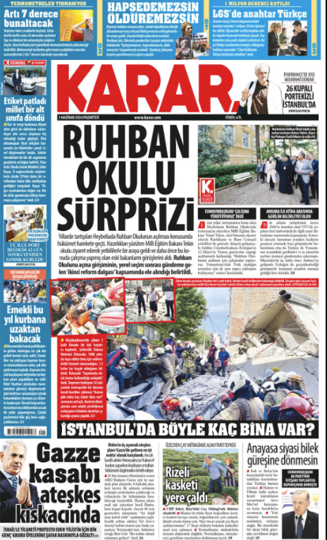 Με πρωτοσέλιδο τίτλο “Έκπληξη στη Θεολογική Σχολή”, η τουρκική εφημερίδα Karar υποστηρίζει ότι η τουρκική κυβέρνηση κινείται για το θέμα της επαναλειτουργίας της Σχολής, που παραμένει κλειστή από το 1971.