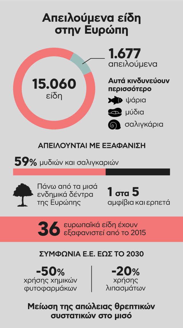 Ένα στα οκτώ εκατομμύρια είδη παγκοσμίως κινδυνεύουν με εξαφάνιση. Ποια και πόσα βρίσκονται στην Ευρώπη και τι κάνει το ΕΚ για την προστασία τους. Δείτε το Infographic του NEWS 24/7.