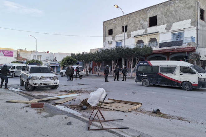«Αυτό δεν έχει καμία σχέση με τις κινήσεις διεκδίκησης που διασφαλίζονται από τον νόμο και το Σύνταγμα», εκτίμησε ο Χαγιούνι. «Οι διεκδικήσεις εκτυλίσσονται κανονικά την ημέρα (…) και χωρίς εγκληματικές ενέργειες», πρόσθεσε σε συνέντευξη στον ιδιωτικό ραδιοφωνικό σταθμό Mosaique, κάνοντας λόγο για δύο τραυματίες μεταξύ των δυνάμεων της τάξης.