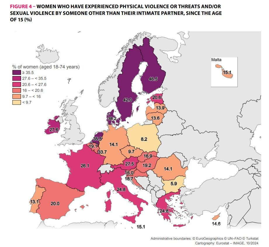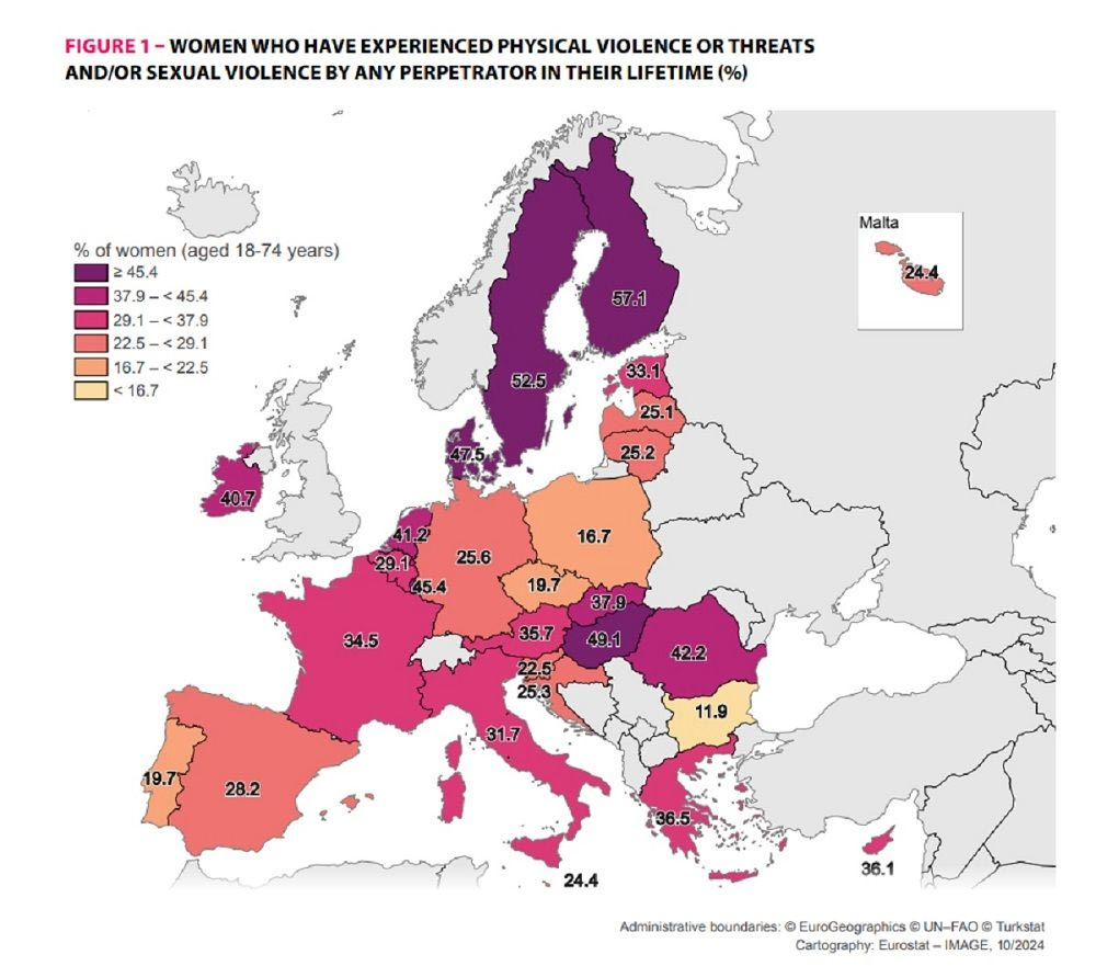 Αποκαλυπτική είναι η νέα έκθεση της για την έμφυλη βία στην Ευρωπαϊκή Ένωση, που πραγματοποίησαν από κοινού η Eurostat, ο ευρωπαϊκός Οργανισμός Θεμελιωδών Δικαιωμάτων (FRA) και το Ευρωπαϊκό Ινστιτούτο για την Ισότητα των Φύλων (EIGE).