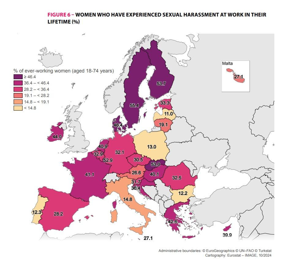 Μία στις τρεις γυναίκες στην ΕΕ (30,8%) έχει βιώσει σεξουαλική παρενόχληση στον χώρο εργασίας κατά τη διάρκεια της ζωής της.