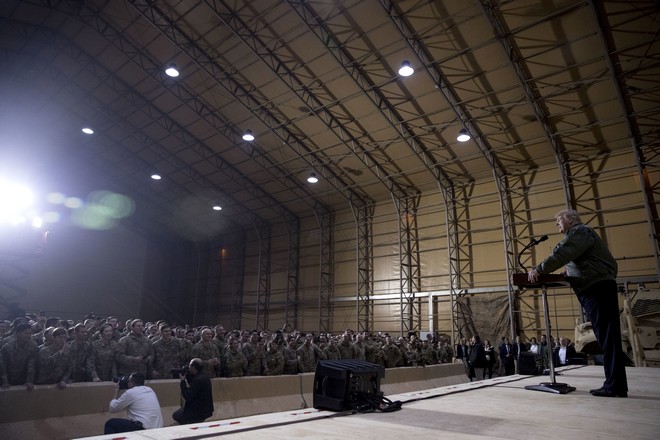 Σημειώνεται πως είναι η πρώτη φορά που ο Τραμπ επισκέπτεται αμερικανικά στρατεύματα σε εμπόλεμη ζώνη στη θητεία του. Κατά την επίσκεψή του, ο πρόεδρος των ΗΠΑ απηύθυνε χαιρετισμό προς τους ενόπλους, ενώ εκείνοι των υποδέχθηκαν με χειροκροτήματα σε κλίμα συγκίνησης.