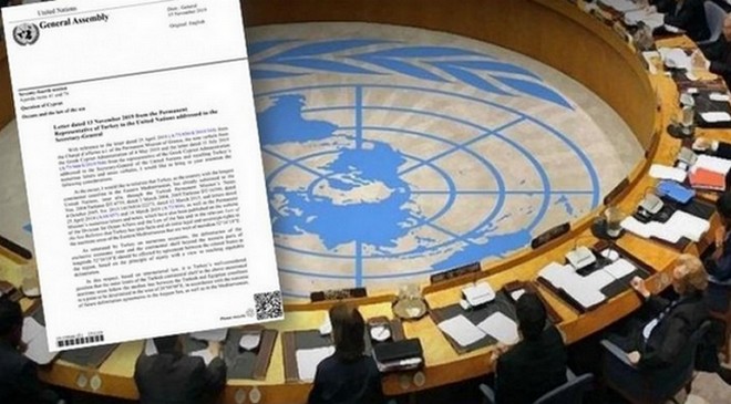 Αναφορικά με την επιστολή της 25ης Απριλίου 2019 (A / 73/850-S / 2019/344) του Επιτετραμμένου της μόνιμης αποστολής της Ελλάδας, της προφορικής διακοίνωσης της ελληνοκυπριακής Διοίκησης της 4ης Μαΐου 2019 και της επιστολής της 11ης Ιουλίου 2019 (Α / 73/944-S / 2019/564) του αντιπροσώπου της ελληνοκυπριακής Διοίκησης απευθυνόμενος στον Γενικό Γραμματέα των Ηνωμένων Εθνών και υπενθυμίζοντας τα πολυάριθμα γράμματα και σημειώσεις της Τουρκίας, θα ήθελα να επιστήσω την προσοχή σας στις ακόλουθες σκέψεις.