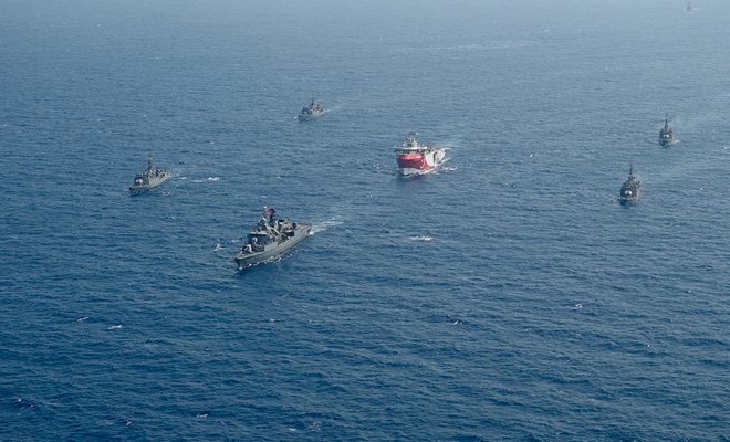 Εν τω μεταξύ, η Τουρκία έστειλε πολεμικά πλοία για να συνοδεύσει τα γεωτρύπανά της στην ανατολική Μεσόγειο, διακινδυνεύοντας μια στρατιωτική αντιπαράθεση με τον ΝΑΤΟ, εταίρο της Ελλάδας.