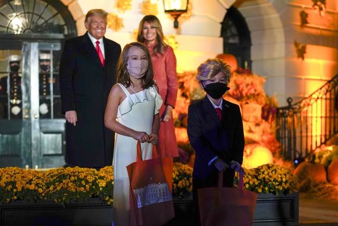 Το προεδρικό ζεύγος φωτογραφήθηκε με τους ανήλικους μασκαράδες, χωρίς να διατηρεί αρκετές φορές την απόσταση ασφαλείας, δεδομένου ότι έχει νοσήσει πρόσφατα από κορονοϊό