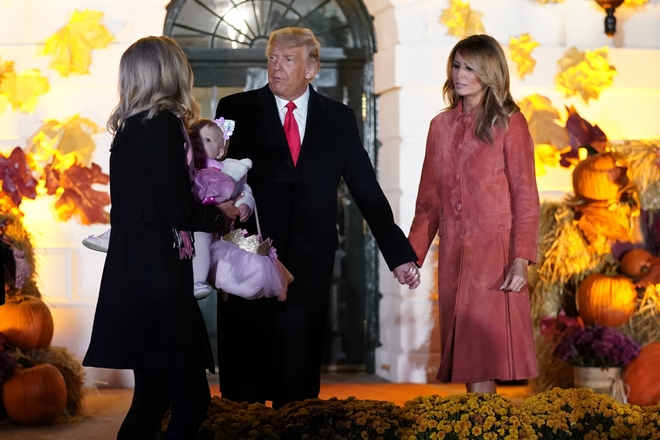 Το προεδρικό ζεύγος φωτογραφήθηκε μάλιστα με τους γονείς και τους ανήλικους μασκαράδες, χωρίς να διατηρεί αρκετές φορές την απόσταση ασφαλείας, δεδομένου ότι έχει νοσήσει πρόσφατα από κορονοϊό.