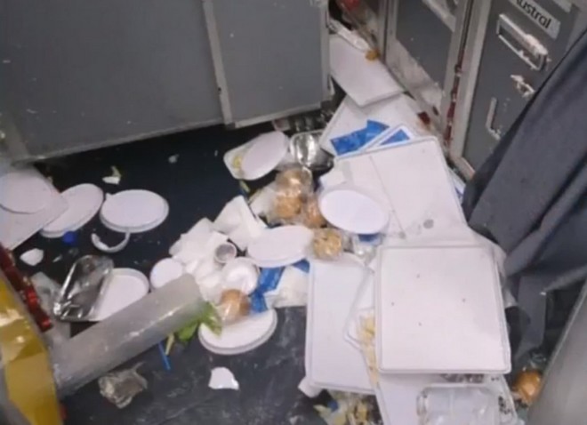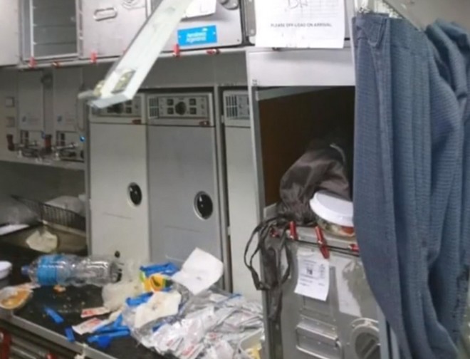 Η καμπίνα, μετά το περιστατικό, έμοιαζε με πεδίο μάχης, με φαγητά, δίσκους και διάφορα αντικείμενα να έχουν φράξει τον διάδρομο, ντουλαπάκια να έχουν ανοίξει και τις μάσκες οξυγόνου να έχουν πέσει.