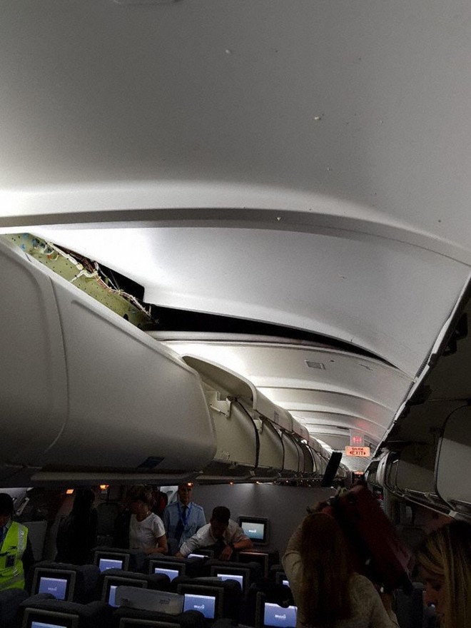 "Πεδίο μάχης" η καμπίνα των επιβατών μετά τις έντονες αναταράξεις. Αίματα, μάσκες οξυγόνου, φαγητά, δίσκοι και διάφορα αντικείμενα πεταμένα στο διάδρομο