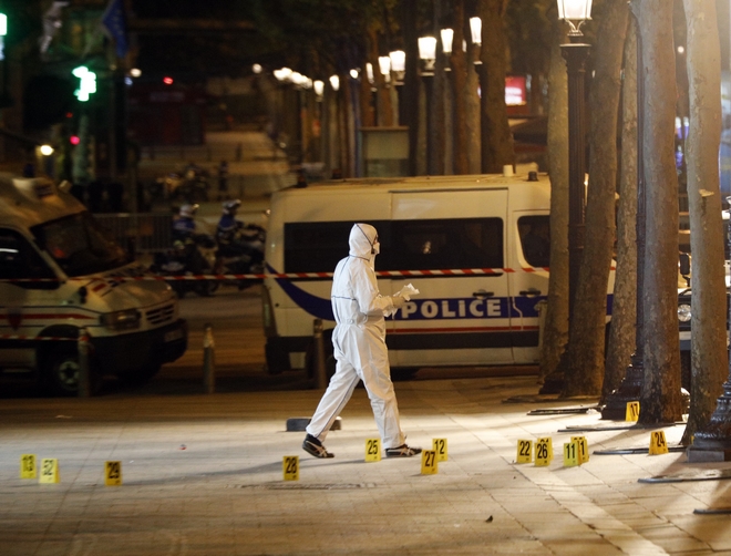 Η πλατιά λεωφόρος που οδηγεί μακριά από την Αψίδα Θριάμβου ήταν κατάμεστη με Παριζιάνους και τουρίστες που χαίρονταν την ανοιξιάτικη βραδιά, αλλά η αστυνομία εκκένωσε γρήγορα την περιοχή που παρέμεινε άδεια μέσα στη νύχτα, εκτός από τους βαριά οπλισμένους αστυνομικούς και τα περιπολικά της αστυνομίας.