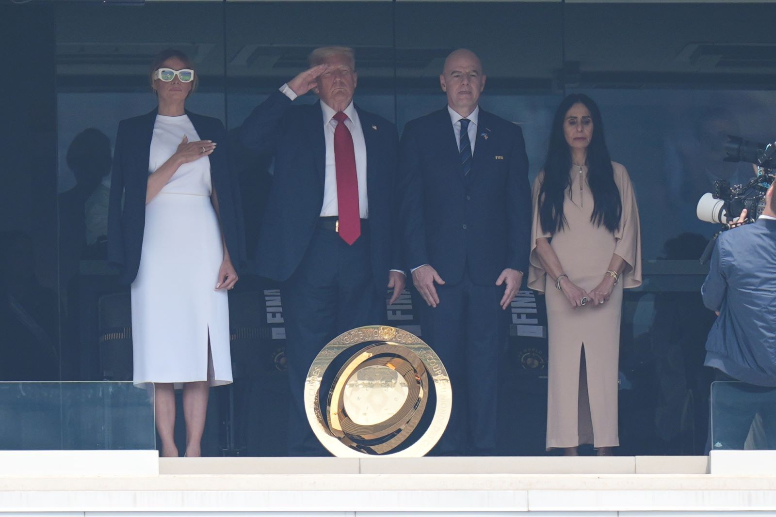 Ο πρόεδρος της χώρας, Ντόναλντ Τραμπ, αλλά και ο πρόεδρος της FIFA, Τζιάνι Ινφαντίνο, βρέθηκαν, όπως αναφέρει το SPORT 24, στο “MetLife Stadium”, με τον τηλεοπτικό φακό να πιάνει τον πλανητάρχη να κάνει στρατιωτικό χαιρετισμό κατά την ανάκρουση του εθνικού ύμνου των ΗΠΑ στη μικρή τελετή πριν από την έναρξη της σπουδαίας αναμέτρησης.