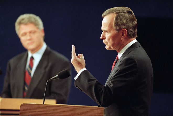 Ο Μπους, αφού είχε ορκιστεί κατά την προεκλογική εκστρατεία του το 1988 ότι δεν θα αυξήσει ποτέ τους φόρους, είχε τελικά δεχθεί να τους αυξήσει υπό την πίεση του Κογκρέσου. Και οι Ηνωμένες Πολιτείες πέρασαν μια ύφεση το 1991-1992 που είχε μεταφρασθεί σε ισχυρή αύξηση της ανεργίας.