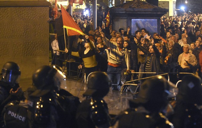 Οι εισβολείς είναι οπαδοί του πρώην πρωθυπουργού Νίκολα Γκρουέφσκι και του κόμματος VMRO DPMN, και ξυλοκόπησαν βουλευτές. Ο ηγέτης του Σοσιαλδημοκρατικού Κόμματος Ζόραν Ζάεφ γρονθοκοπήθηκε και τραυματίστηκε μετά την εισβολή των διαδηλωτών στην αίθουσα. Εκτός από τον Ζάεφ, τραυματίστηκαν άλλοι τρεις βουλευτές, αστυνομικοί και υπάλληλοι του κοινοβουλίου.