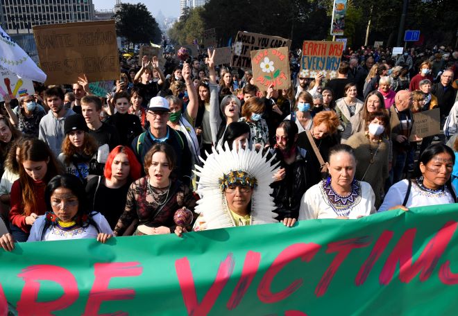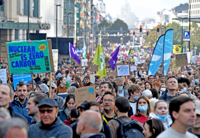 Δεκάδες χιλιάδες διαδηλωτές συμμετείχαν σήμερα στις Βρυξέλλες στην πρώτη μεγάλη πορεία για το κλίμα που πραγματοποιήθηκε μετά την έναρξη της επιδημίας του κορονοϊού, λίγες εβδομάδες πριν από την COP26, τη διεθνή διάσκεψη του ΟΗΕ για το κλίμα.