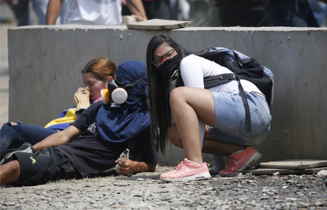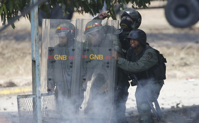 Οι διαδηλωτές προσπαθούσαν να αποκλείσουν αυτοκινητόδρομο που περνά μπροστά από την αεροπορική βάση La Carlota, από όπου ο Χουάν Γκουαϊδό διαβεβαίωσε την Τρίτη, ότι έχει την υποστήριξη ομάδας στρατιωτών.