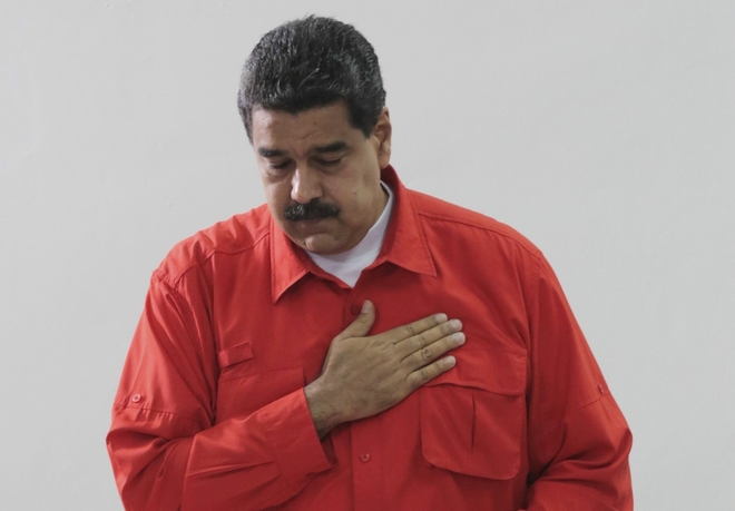In this photo released by Miraflores Press Office, Venezuela's President Nicolas Maduro gestures after he casts his ballot as he votes for a constitutional assembly in Caracas, Venezuela on Sunday, July 30, 2017. Maduro asked for global acceptance on Sunday as he cast an unusual pre-dawn vote for an all-powerful constitutional assembly that his opponents fear he'll use to replace Venezuelan democracy with a single-party authoritarian system. (Miraflores Press Office via AP) AP