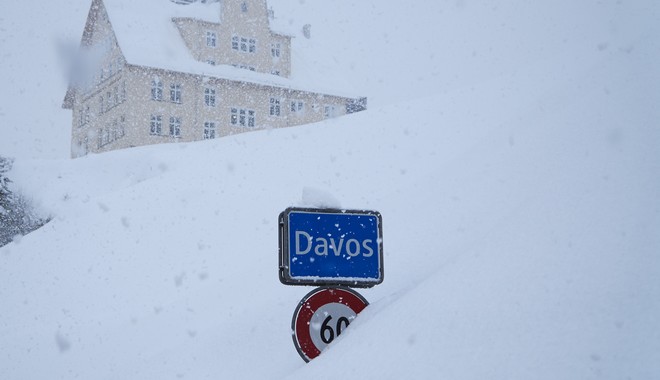 Είναι η πρώτη φορά στα 48 χρόνια του θεσμού που το Νταβός βρίσκεται αντιμέτωπο με τόσο έντονη κακοκαιρία.