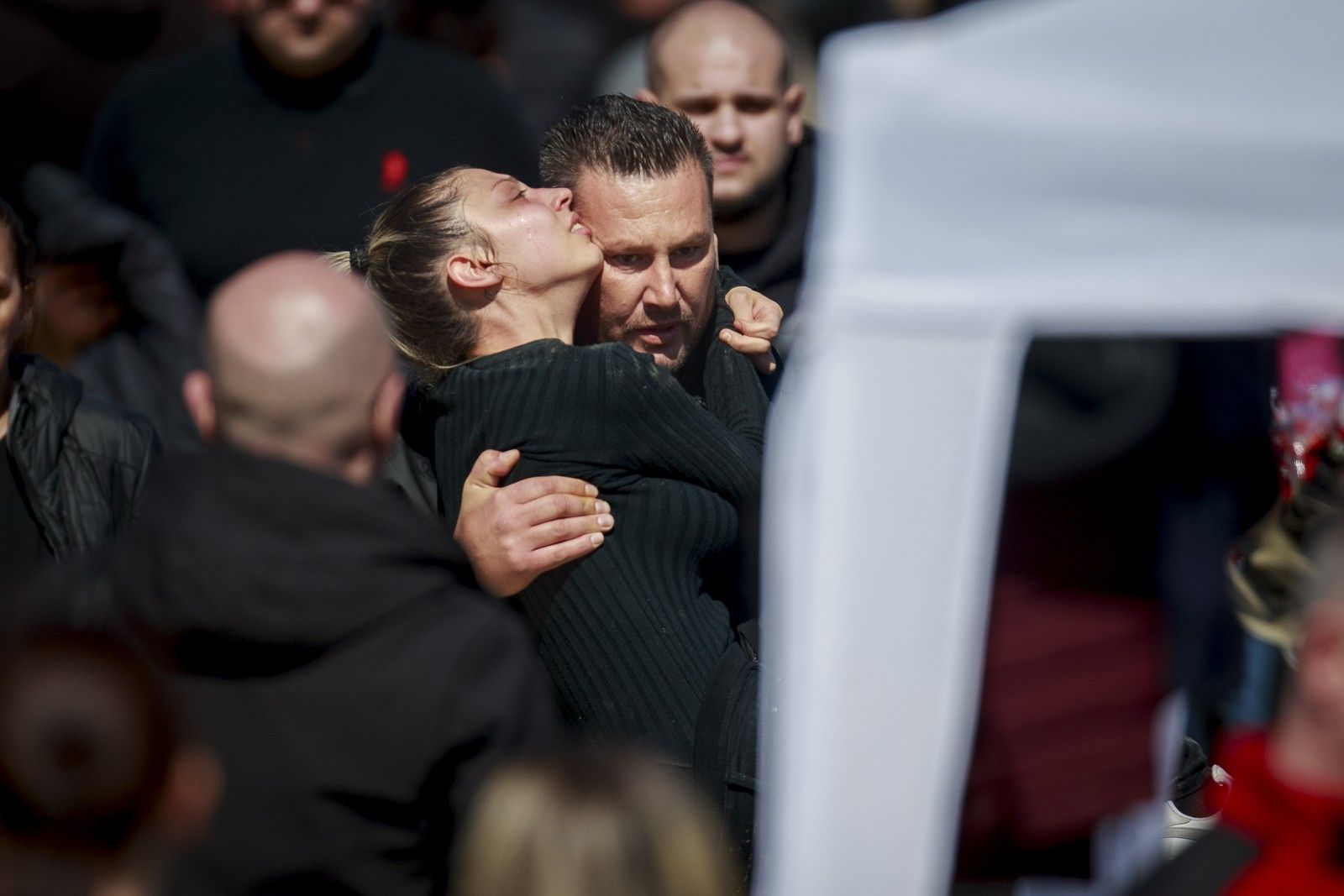 Σκηνές από μια τραγωδία που δεν χωρά ο ανθρώπινος νους εκτυλίχθηκαν το μεσημέρι της Πέμπτης (20/03) στο νεκροταφείο της πόλης Κότσανι, στη Βόρεια Μακεδονία: κραυγές απόγνωσης από μάνες που έχασαν τα παιδιά τους, πατεράδες που κρατούσαν το κεφάλι τους σαν να μην μπορεί να χωρέσει ο νους τους αυτό που έχει συμβεί, συγγενείς με μπλούζες που έφεραν πάνω τους τη μορφή των αγαπημένων τους προσώπων, νεαροί με λουλούδια στα χέρια και δάκρυα στα μάτια, και ένα ποτάμι ανθρώπων να παρακολουθεί βουβό.
