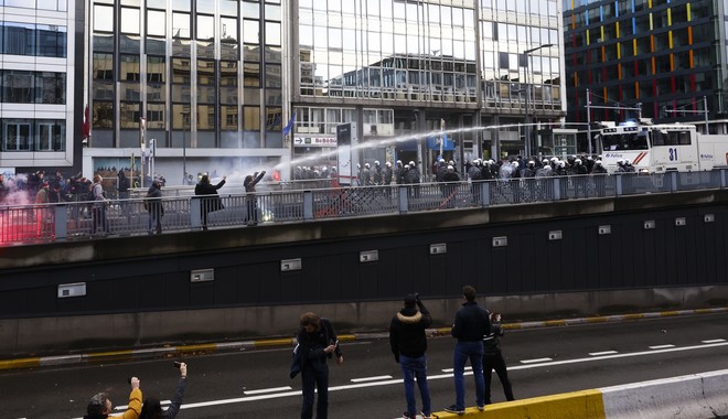 Σκηνές χάους σημειώθηκαν στο κέντρο των Βρυξελλών, κατά τη διάρκεια της διαδήλωσης κατά των υγειονομικών μέτρων, στην οποία συμμετείχαν περίπου 35.000 διαδηλωτές, σύμφωνα με την αστυνομία.