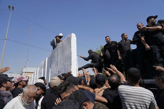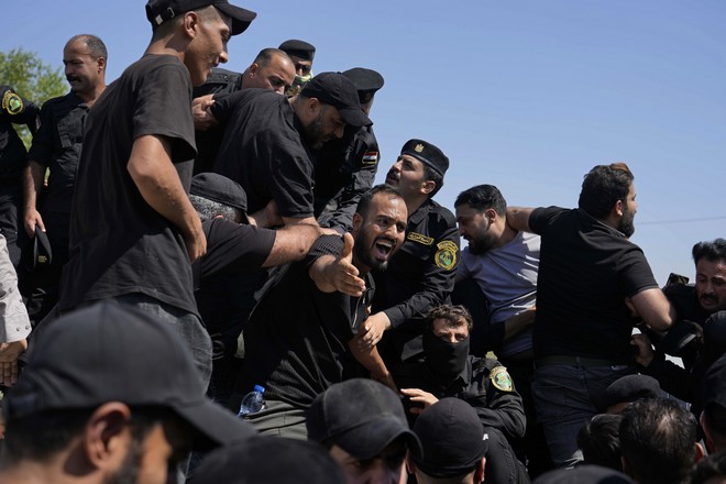 Νεαροί, πιστοί στον Σαντρ, οι οποίοι κατέβηκαν στους δρόμους για να διαμαρτυρηθούν για την απόφαση του ηγέτη τους, συγκρούστηκαν με υποστηρικτές ομάδων που στηρίζονται από την Τεχεράνη. Οι δύο πλευρές εκτόξευαν πέτρες οι μεν στους δε έξω από την Πράσινη Ζώνη της Βαγδάτης, μια πολύ καλά φρουρούμενη περιοχή όπου βρίσκονται πολλά υπουργεία και πρεσβείες.
