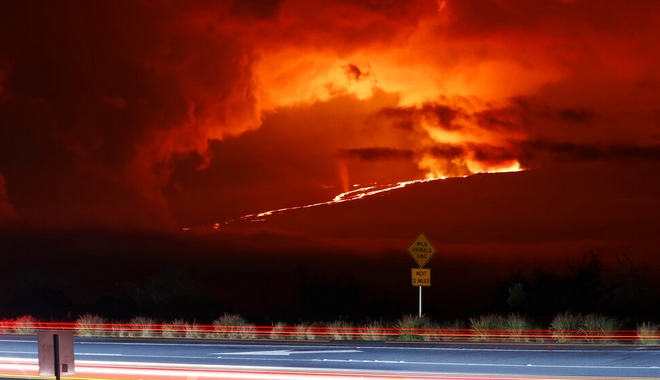 Το μεγαλύτερο ενεργό ηφαίστειο του κόσμου, το Μάουνα Λόα στη Χαβάη εξερράγη σχεδόν 40 χρόνια μετά την τελευταία έκρηξη του. Συγκλονιστικές εικόνες από το ξύπνημά του.
