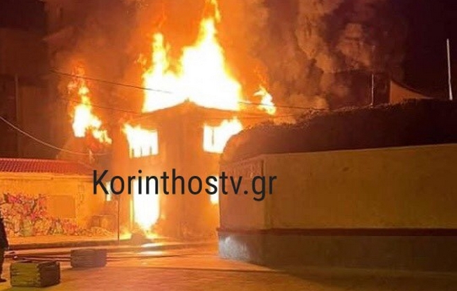 Σύμφωνα με το korinthostv.gr το κτήριο έχει καεί ολοσχερώς.