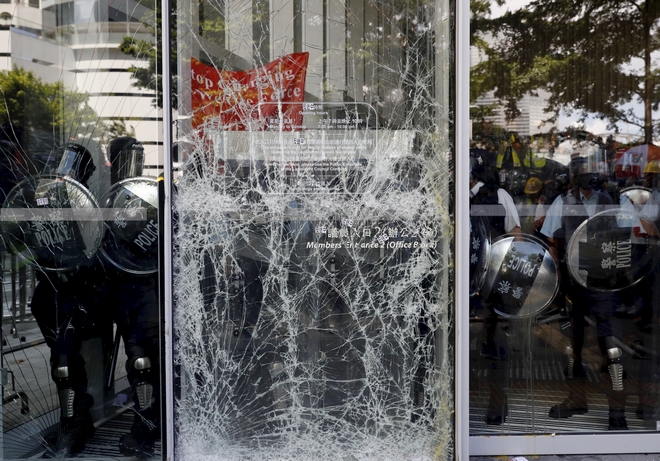 Διαδηλωτές που αντιτίθενται στην προσκείμενη στο Πεκίνο κυβέρνηση του Χονγκ Κονγκ προσπάθησαν σήμερα να διεισδύσουν στο τοπικό κοινοβούλιο σπάζοντας τζάμια, σύμφωνα με δημοσιογράφους του AFP, πριν από την μεγάλη διαδήλωση για την 22η επέτειο της παράδοσης της κυριαρχίας του Χονγκ Κονγκ από τη Βρετανία στην Κίνα.