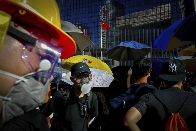Λίγο πριν από την παραδοσιακή τελετή της έπαρσης της κινεζικής σημαίας και αυτής του Χονγκ Κονγκ, η οποία σηματοδοτεί την επέτειο από την παράδοση της κυριαρχίας της πόλης από το Ηνωμένο Βασίλειο στην Κίνα την 1η Ιουλίου του 1997, οι διαδηλωτές δέχθηκαν επίθεση από τους αστυνομικούς.