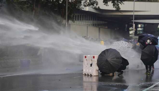 Αντλίες νερού και δακρυγόνα χρησιμοποίησε η αστυνομία του Χονγκ Κονγκ για να διαλύσει τους διαδηλωτές που εκτόξευαν βόμβες μολότοφ και τούβλα κοντά στο κτίριο που στεγάζει το Νομοθετικό Συμβούλιο της πρώην βρετανικής αποικίας και σε γραφεία της κεντρικής κυβέρνησης.