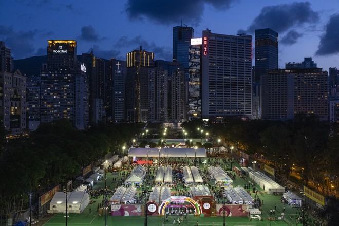 Φέτος η γιγάντια συγκέντρωση στο πάρκο αντικαταστάθηκε από μια εμπορική έκθεση αφιερωμένη σε προϊόντα από την ηπειρωτική Κίνα, την οποία διεξάγουν μέχρι τη Δευτέρα οργανώσεις που υποστηρίζουν το Πεκίνο για να γιορτάσουν την 26η επέτειο της επιστροφής του Χονγκ Κονγκ στην Κίνα.