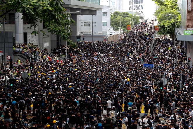 Χιλιάδες διαδηλωτές ντυμένοι στα μαύρα απέκλεισαν τους κεντρικούς δρόμους του Χονγκ Κονγκ και έχουν συγκεντρωθεί μπροστά από το αρχηγείο της αστυνομίας για να απαιτήσουν την παραίτηση της επικεφαλής της κυβέρνησης, του αρχηγού της αστυνομίας και την απελευθέρωση των διαδηλωτών οι οποίοι συνελήφθησαν τις τελευταίες ημέρες κατά την διάρκεια της μεγαλύτερης πολιτικής κρίσης στην πρώην βρετανική αποικία εδώ και δεκαετίες.