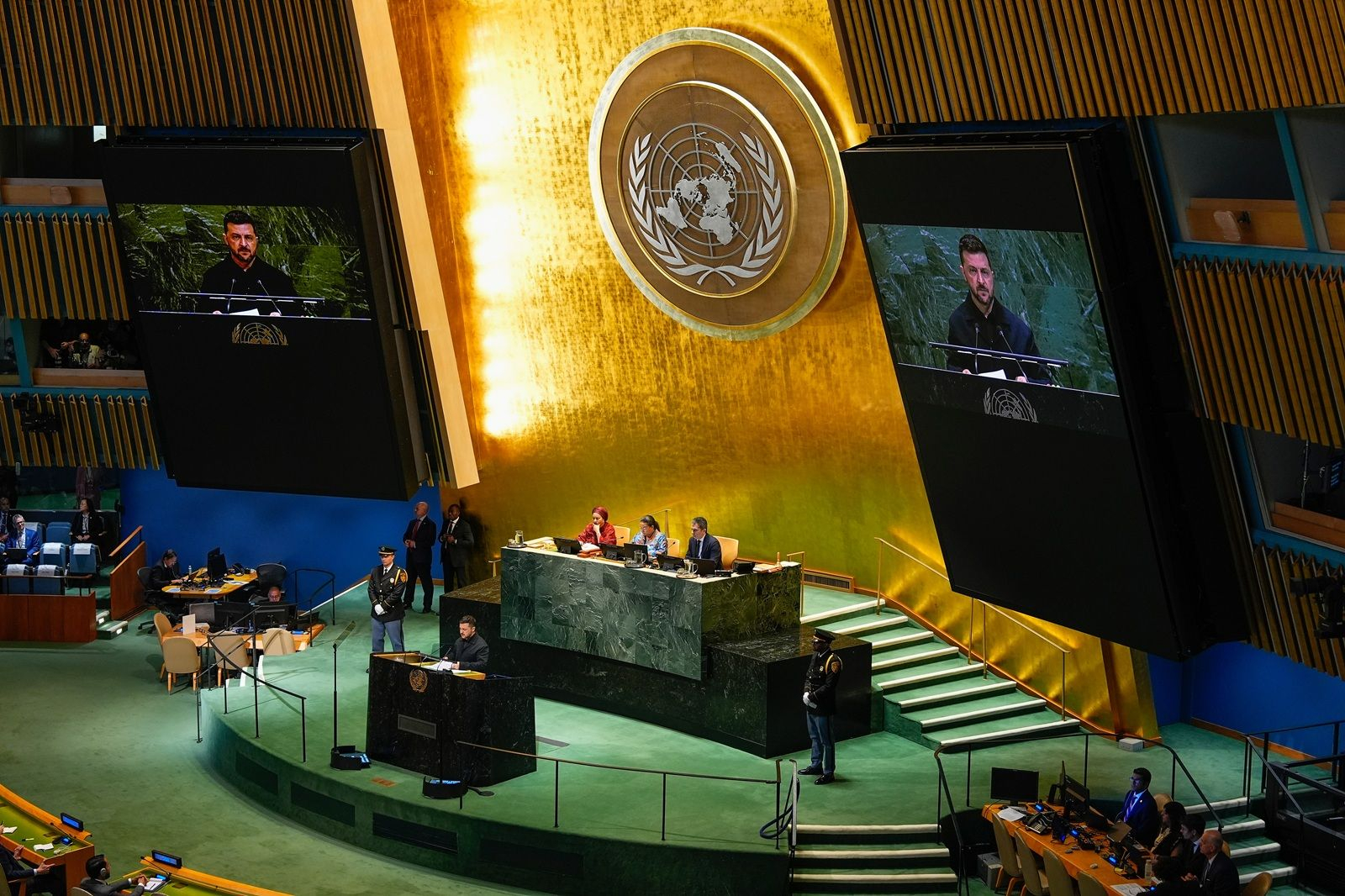 Ο Βολοντίμιρ Ζελένσκι, κατά τη διάρκεια της ομιλίας του στη Γενική Συνέλευση του ΟΗΕ, προειδοποίησε για την παγκόσμια διάσταση των απειλών κατά της διεθνούς ασφάλειας και κάλεσε για ισχυρές συμμαχίες και επενδύσεις σε όπλα.