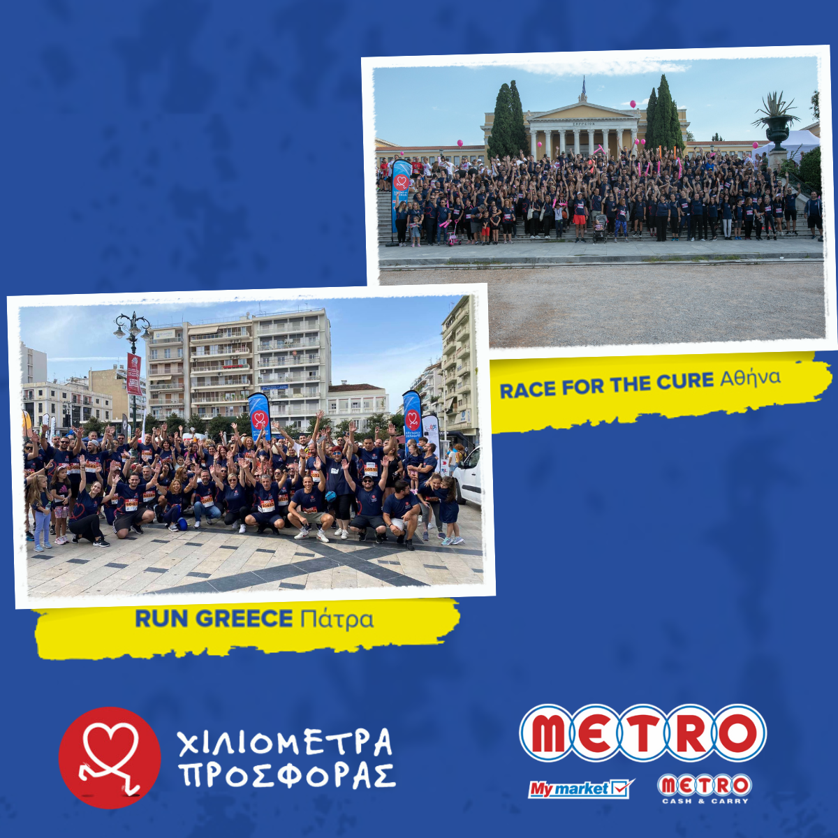 Με σύμμαχο τη θετική διάθεση και τα χαμόγελα μικρών και μεγάλων, η ομάδα δρομέων της METRO για μία ακόμη φορά ανέδειξε την αξία της ομαδικής συμμετοχής συνδυάζοντας την άσκηση και τη διασκέδαση, με την προσφορά στο συνάνθρωπο και την κοινωνία.. Μέσα από τους συγκεκριμένους αγώνες, τα «Χιλιόμετρα Προσφοράς» στήριξαν το Ίδρυμα Άσπρες Πεταλούδες Βόλου, το Άσυλο του Παιδιού Θεσσαλονίκης, το Σύλλογο ΑΜΕΑ Επαρχίας Ρόδου, τη μη κερδοσκοπική εταιρεία Φωτεινό Αστέρι Πάτρας και το Άλμα Ζωής!