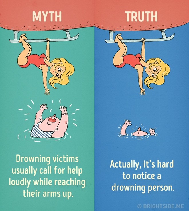 Όταν ένας άνθρωπος πνίγεται ζητά βοήθεια φωνάζοντας και κουνώντας τα χέρια, πράγμα που διαφέρει στην πραγματικότητα, καθώς ο ναυαγοσώστης αδυνατεί να εντοπίσει έναν άνθρωπο που κινδυνεύει στη θάλασσα την ώρα που κουνά τα χέρια του.