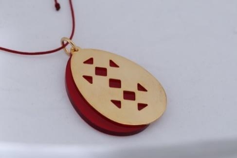 Μενταγιόν, της Σοφία Τσιλιακού, από επιχρυσωμένο ορείχαλκο και plexiglass.