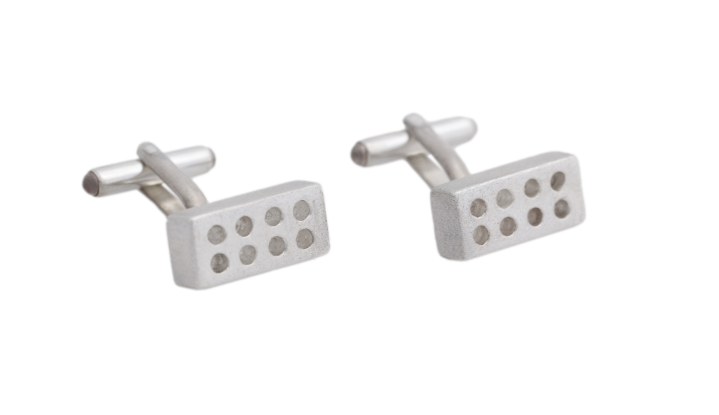 Ασημένια μανικετόκουμπα, του Vassilis Vassiliou, εμπνευσμένα από το Μουσείο Πλινθοκεραμοποιίας στον Βόλο.