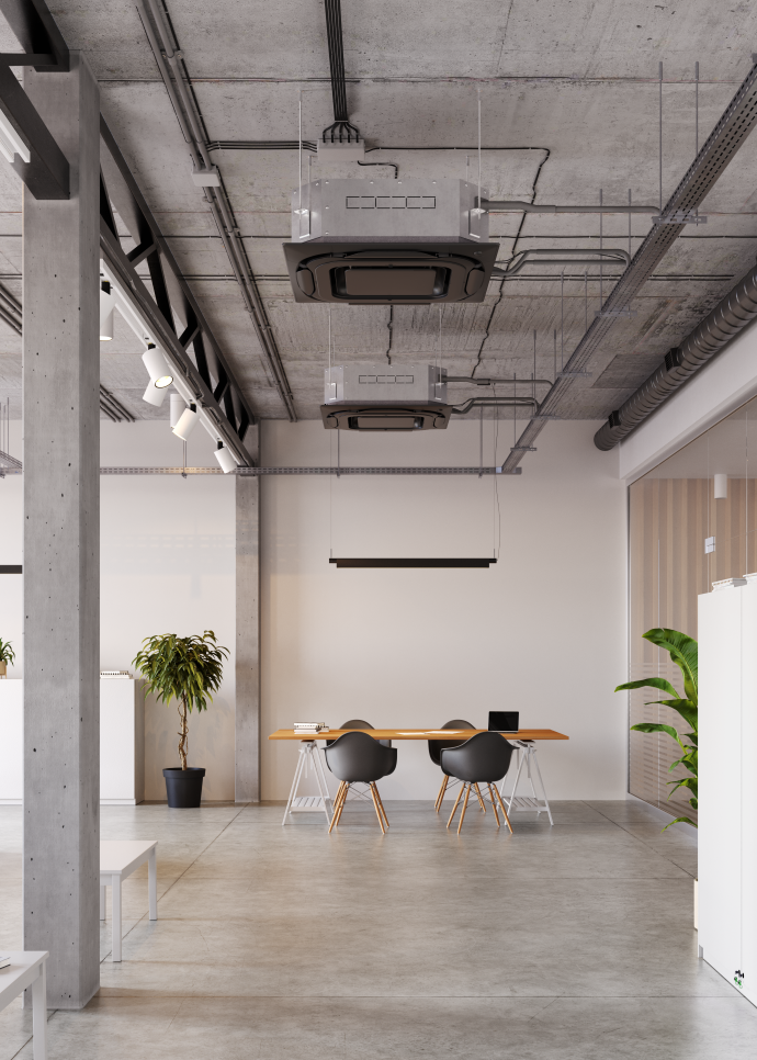 - Αναρτώμενες οροφής: Με έξοδο αέρα 4 κατευθύνσεων που εξαλείφει τις νεκρές ζώνες.