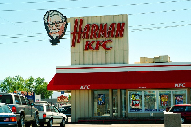 SALT LAKE CITY, UT - AUGUST 12: The first KFC site, located at 3900 South at State Street still does business August 12, 2002 in south Salt Lake City, Utah. KFC, with 11,815 locations worldwide, including 5,399 in the United States, is celebrating its 50th anniversary. Colonel Harland Sanders persuaded Pete Harman to add his specialty chicken, coated with a blend of 11 herbs and spices, to the menu of Harman's cafe in August 1952. The dish became an instant hit. (Photo by Danny La/Getty Images) Getty Images
