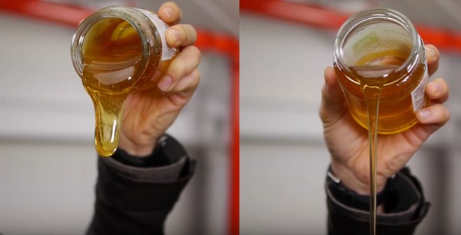 Όπως θα δείτε στο βίντεο, κάτι αντίστοιχο συμβαίνει και με το μέλι που όταν είναι ζεστό ρέει πιο γρήγορα και εύκολα. Ωστόσο με το νερό είναι πιο περίπλοκο να παρατηρήσει κανείς με γυμνό μάτι αυτή τη διαφορά. Όταν όμως το νερό ρέει από ένα δοχείο σε κάποιο άλλο, ο ήχος που αυτό παράγει διαφοροποιείται αναλογικά με την ‘πηχτότητά’ του, δηλαδή το αν αυτό είναι κρύο ή καυτό.