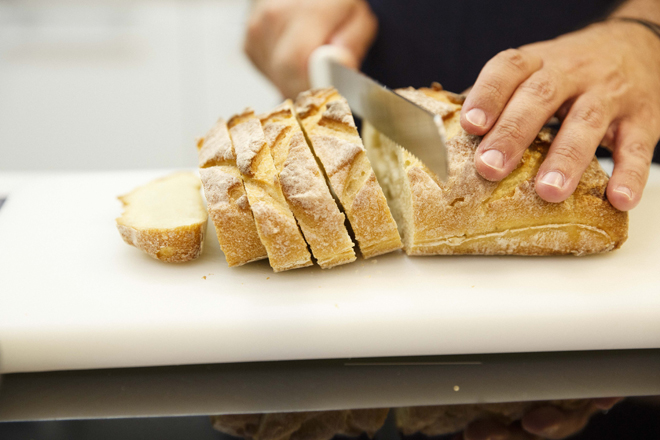 Κόβετε το ψωμί σε φέτες πάχους 2 εκατοστών.
