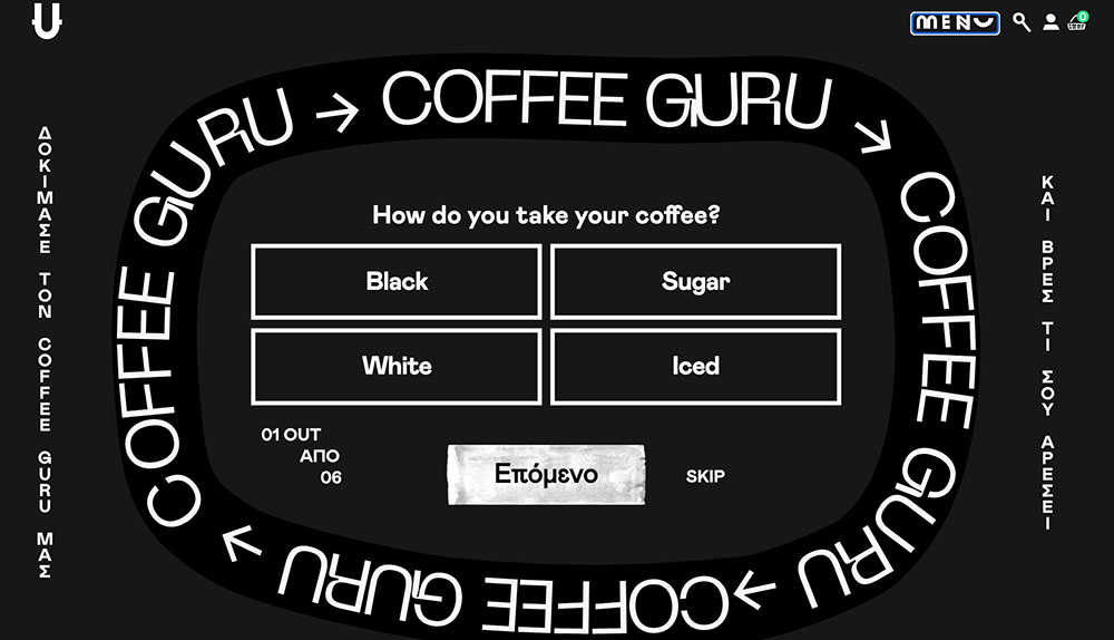 Έχει όμως, προνοήσει και για όσους δυσκολεύονται να διαλέξουν, δημιουργώντας τον Coffee Guru. Μέσω μερικών απλών ερωτήσεων, ο Coffee Guru προτείνει κάποιους καφέδες που θα σου αρέσουν με βάση τις απαντήσεις που έχεις δώσει.