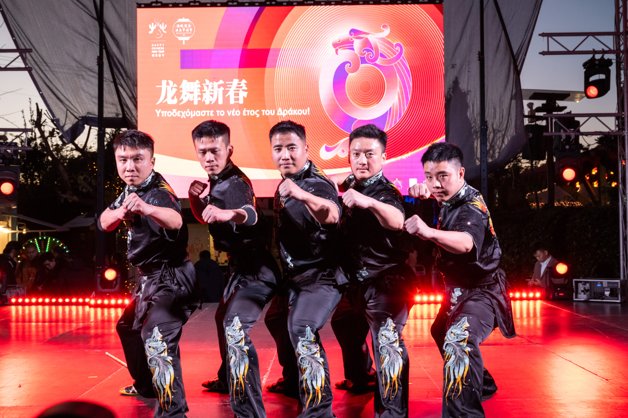Μεταξύ άλλων, οι επισκέπτες απόλαυσαν την εντυπωσιακή παρέλαση του δράκου, επιδείξεις πολεμικών τεχνών από αθλητές και αθλήτριες της Ελληνικής Ομοσπονδίας Kung Fu, αλλά και καλλιτεχνικό πρόγραμμα πολιτιστικού ενδιαφέροντος από την ομάδα Πεκίνου Κινέζων καλλιτεχνών “Happy Chinese New Year” που επισκέφθηκαν τη χώρα μας στο πλαίσιο των εορταστικών εκδηλώσεων. Η παράσταση περιλάμβανε παρουσίαση παραδοσιακής μουσικής, Κινέζικης όπερας, πολεμικών τεχνών και χορευτικών σχημάτων. Τέλος, εντυπωσιακή ήταν η μουσική συνύπαρξη του Κινέζικου παραδοσιακού μουσικού οργάνου Guzheng σε συνδυασμό με το Ελληνικό μπουζούκι από τους καλλιτέχνες Μιράν Τσαλικιάν και Yating Zan και το χορευτικό θέαμα από τους μαθητές της Κινεζικής σχολής χορού We&Μe Dance School.